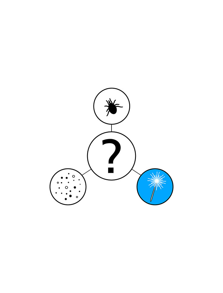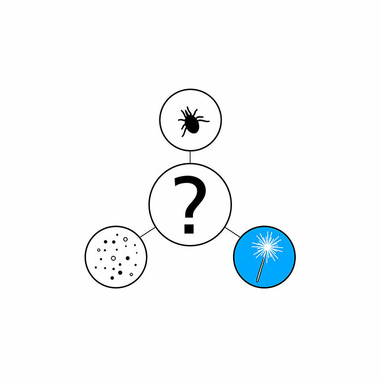 Não é fácil determinar na prática que substância está na origem de uma reação alérgica. Uma alergia também pode ser desencadeada por outros fatores, ou por uma combinação de fatores do ambiente envolvente (pólen, farelos ou outras substâncias voláteis à sua volta). É necessário realizar um teste de alergias para determinar as substâncias que lhe causam alergias.