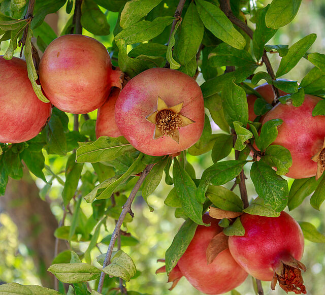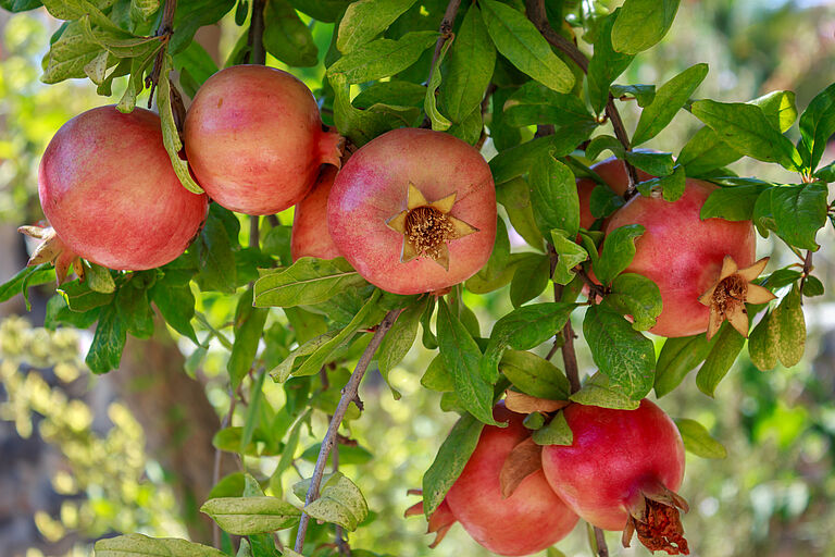 A romã (Punica granatum ) é uma pequena árvore ou arbusto decíduo que pertence à família das Lythraceae . A planta pode crescer entre 5 e 8 metros de altura. A romã foi originalmente cultivada perto do Irã moderno e espalhou-se para a região do Mediterrâneo e para o norte da Índia.