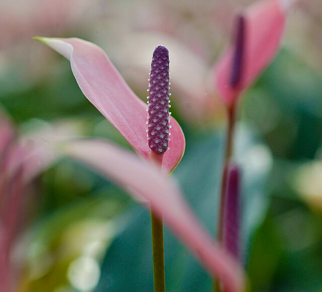 O antúrio é uma planta perene e florida, com flores bonitas e duradouras que se apresentam numa variedade de cores. No entanto, a "flor" é de facto uma folha alterada (também chamada espata) com muitas flores na espádice.
