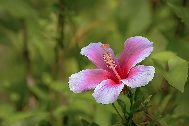 - Hibiscus, bastante conhecido pelas suas flores grandes e ornamentais, em forma de trompete, com cinco ou mais pétalas e cor que varia entre cor-de-rosa e branco, vermelho, cor-de-laranja, pêssego, amarelo e roxo.