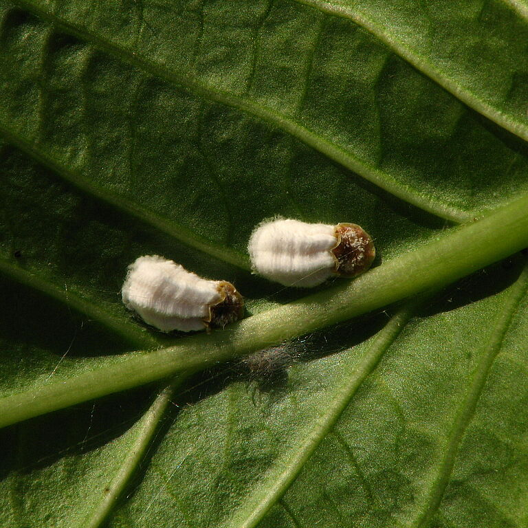 A cochonilha lanosa da vinha oviposita na casca, geralmente nos ramos mais pequenos. A cochonilha do castanheiro da Índia também oviposita na casca, mas geralmente no tronco e nos ramos maiores da planta hospedeira.