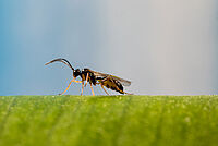 As vespas parasitas adultas emergem das múmias e as fêmeas colocam os seus ovos nos afídeos. A geração seguinte de vespas parasitas desenvolve-se no interior do afídeo, que se transforma numa múmia coriácea. A vespa parasita adulta emerge através de um orifício na parte de trás da múmia. As primeiras múmias são observadas na cultura cerca de 10-14 dias após a primeira introdução.