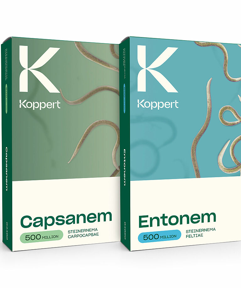 Os nemátodos benéficos produzidos pela Koppert foram seleccionados para atacar espécies específicas de lagartas, e a Koppert produz estirpes específicas de Steinernema feltiae e Steinernema carpocapsae para este fim.