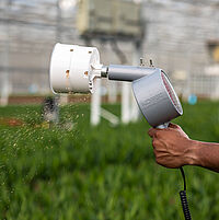 Utilizar o Natutec Mini-Airbug para a distribuição de inimigos naturais na cultura. O Mini-Airbug pode ser utilizado para a distribuição em todo o campo, em pontos quentes específicos, bem como para a distribuição de Artefeed e Entofood.
