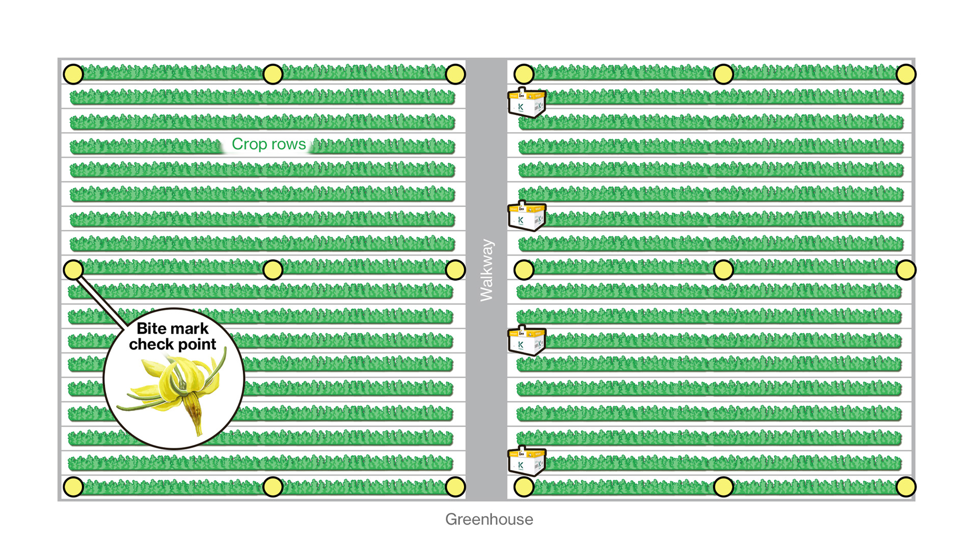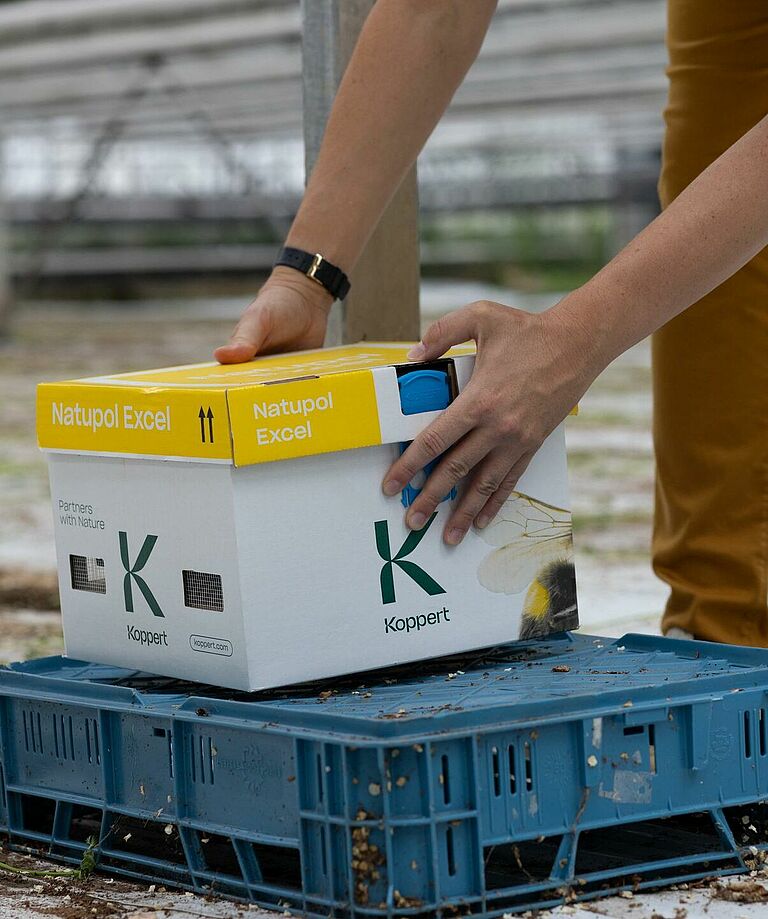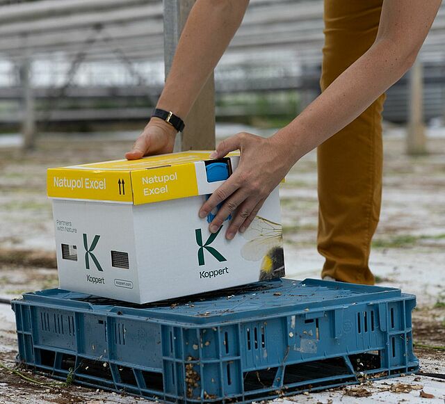 No inverno, escolha um local onde as colmeias recebam a luz do sol desde cedo, normalmente no lado norte. Se necessário, as colmeias podem ser colocadas mais alto no interior da cultura, a uma altura mínima de 1,4 metros acima do solo, nomeadamente em zonas de culturas densas. Nos dias mais sombrios do inverno, considere a possibilidade de colocar as colmeias acima da cultura, perto do telhado da estufa. Isto permite que os abelhões recebam o máximo de luz do dia, facilitando a sua orientação. Para evitar o sobreaquecimento, certifique-se de que as colmeias não estão colocadas demasiado perto de lâmpadas geradoras de calor. Além disso, proteja os seus abelhões da luz solar direta durante a tarde, utilizando telas colocadas por cima das colmeias.