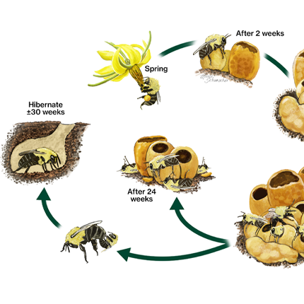Na natureza, as rainhas dos abelhões hibernam sozinhas e debaixo da terra durante o inverno. Antes da hibernação, as novas rainhas jovens abandonam o ninho antigo e acasalam com zangões.