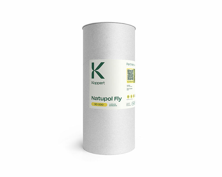 Natupol Fly é embalado num tubo de cartão com uma tampa de plástico. As pupas da mosca são misturadas com serradura para minimizar a produção de calor e aumentar a absorção de humidade e odor. O método de embalagem propositado da mosca Natupol proporciona: