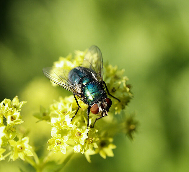 A Lucilia sericata também é conhecida pelo seu movimento eficiente e rápido, tornando-a numa polinização eficaz para uma variedade de culturas. Estas pequenas moscas navegam com agilidade, assegurando que o pólen é distribuído uniformemente, levando a uma melhor fertilização e a um maior rendimento das culturas.