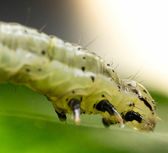 As lagartas são pragas altamente destrutivas que se alimentam de folhas, caules e frutos, causando sérios danos. O controlo biológico combina estratégias de monitorização e controlo: