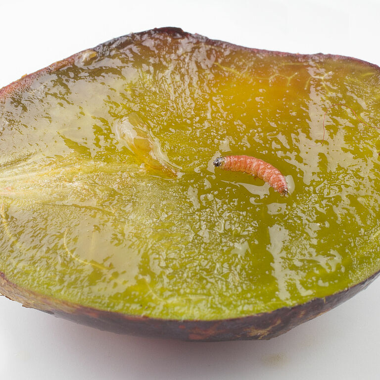Ciclo de vida e aspeto da larva da ameixa vermelha