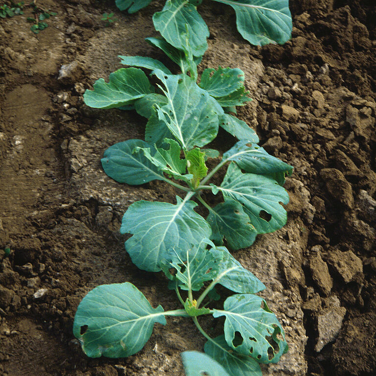 As lagartas alimentam-se principalmente das folhas, provocando buracos irregulares. Os três primeiros instares fazem pequenos buracos, enquanto as fases seguintes se alimentam do tecido entre as nervuras, esqueletizando a folha. Têm um apetite voraz e podem consumir diariamente até três vezes o seu peso corporal. As plantas podem ficar severamente desfolhadas e atrofiadas.