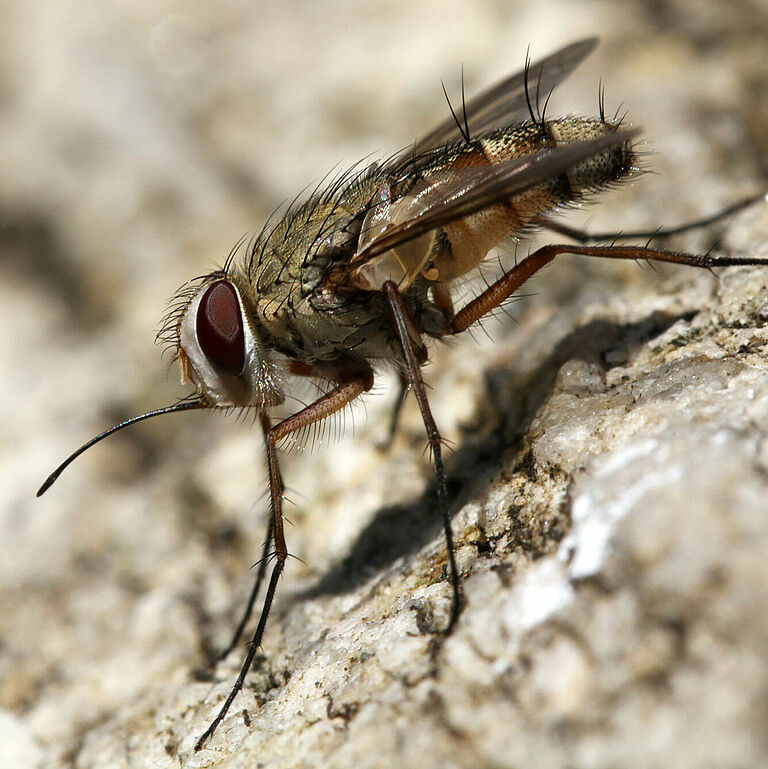 As moscas estáveis pertencem ao género Stomoxys, que em latim significa "boca afiada"; um nome apropriado, uma vez que estas moscas são os únicos membros da família Muscidae que se alimentam de sangue de mamíferos (particularmente gado bovino e cavalos, humanos e porcos, em menor escala). Embora sejam extremamente comuns e existam em todo o mundo, pensa-se que a sua origem remonta algures à Eurásia. As moscas estáveis assemelham-se superficialmente às moscas domésticas, mas são de cor mais clara e têm partes bucais que picam. Tanto as moscas macho como as fêmeas alimentam-se de sangue animal e as fêmeas têm de estar ingurgitadas de sangue para pôr ovos. São insectos muito móveis e podem viajar até 20 km em busca de novos hospedeiros.