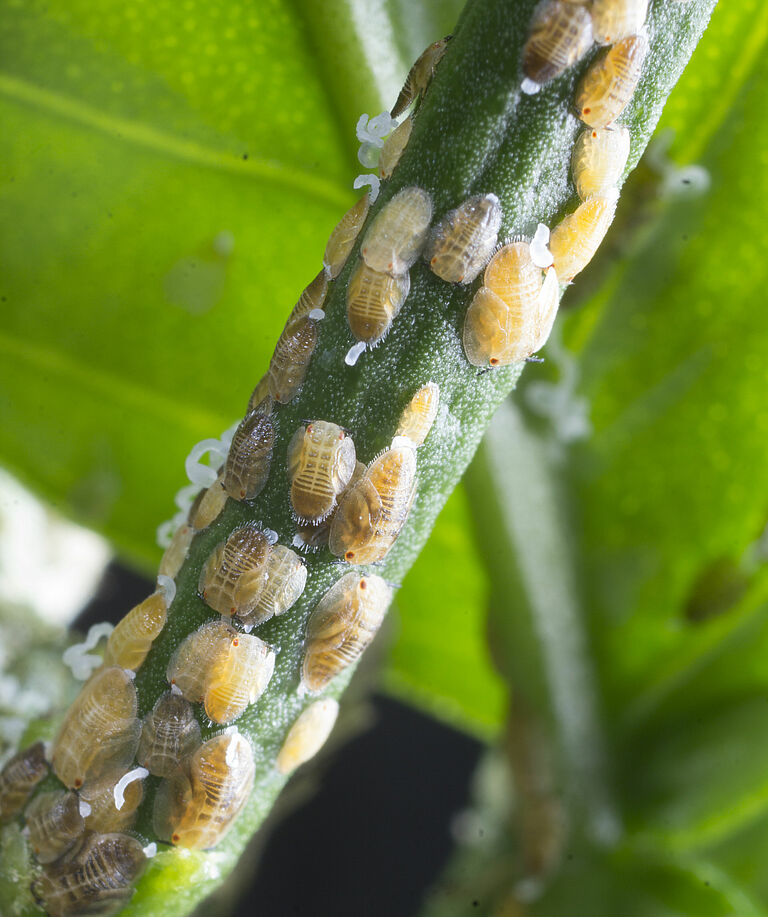 São insetos sugadores de seiva e, por suas picadas sucessivas, causam elevado dano, enrolando as folhas, retorcendo ou engruvinhando os brotos, impedindo assim, o crescimento normal da planta. Se a infestação for intensa, provocam o secamento dos ramos e a redução da produção. Devido ao líquido açucarado que expelem, atraem as formigas e favorecem o desenvolvimento de fumagina. Através de suas picadas, inoculam substâncias tóxicas as plantas. A infestação em período de brotação é sempre mais intensa, promovendo a super brotação da planta. Além destes danos, esta praga é um dos vetores da bactéria Candidatus Liberibacter, agente do “greening”, que é uma doença de origem asiática e africana constatada nos pomares brasileiros.
