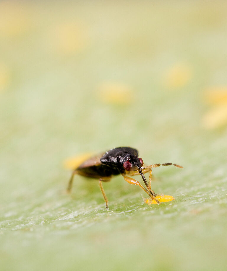 Macrolophus pygmaeus (Mirical, Mirical-N), uma espécie de inseto predador, é particularmente hábil no controlo da mosca-branca e das lagartas, mas também contribui para o controlo dos ácaros Predadores, dos pulgões e das larvas Do Minerador De Folhas.