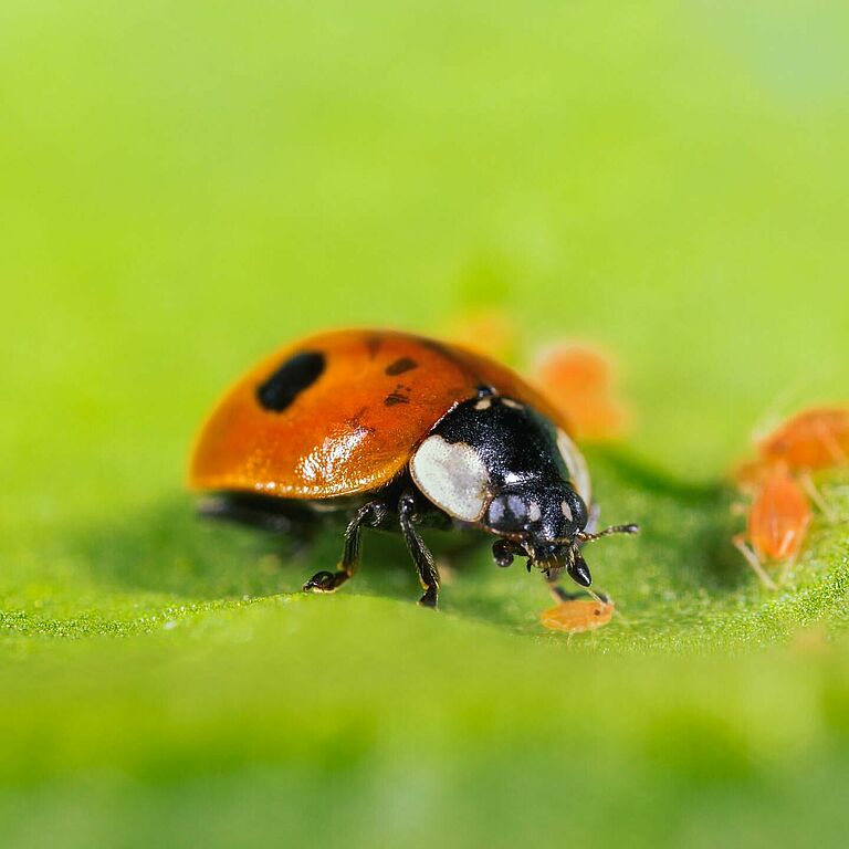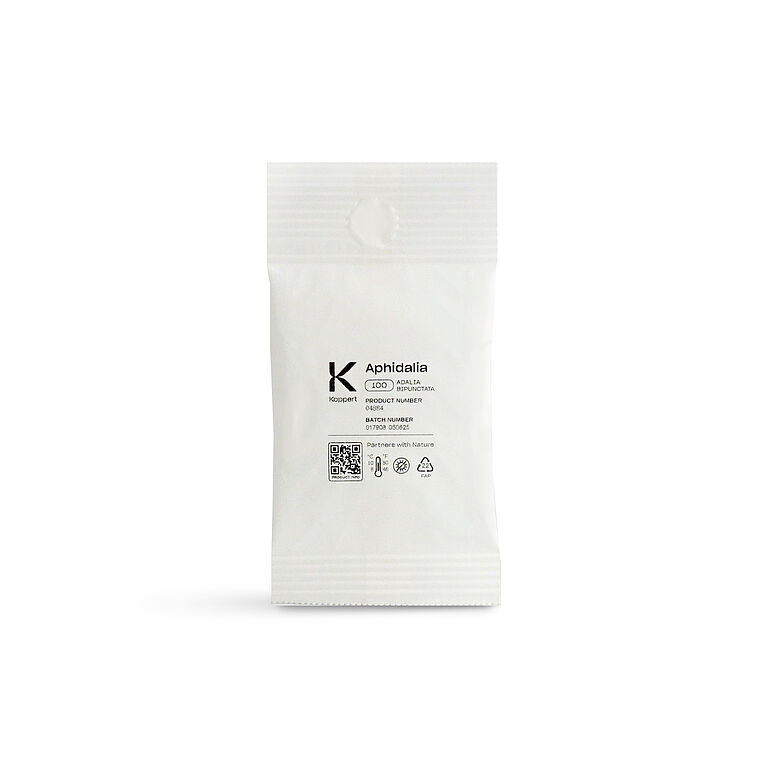 A Adalia bipunctata alimenta-se de todas as espécies de afídeos, mas o produto Aphidalia foi especialmente concebido para o controlo dos afídeos nas árvores.