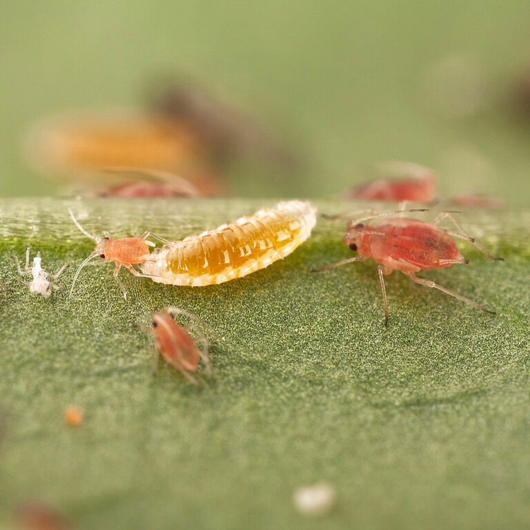 O mosquito da galha predador Aphidoletes aphidimyza é utilizado para o controlo das seguintes pragas: