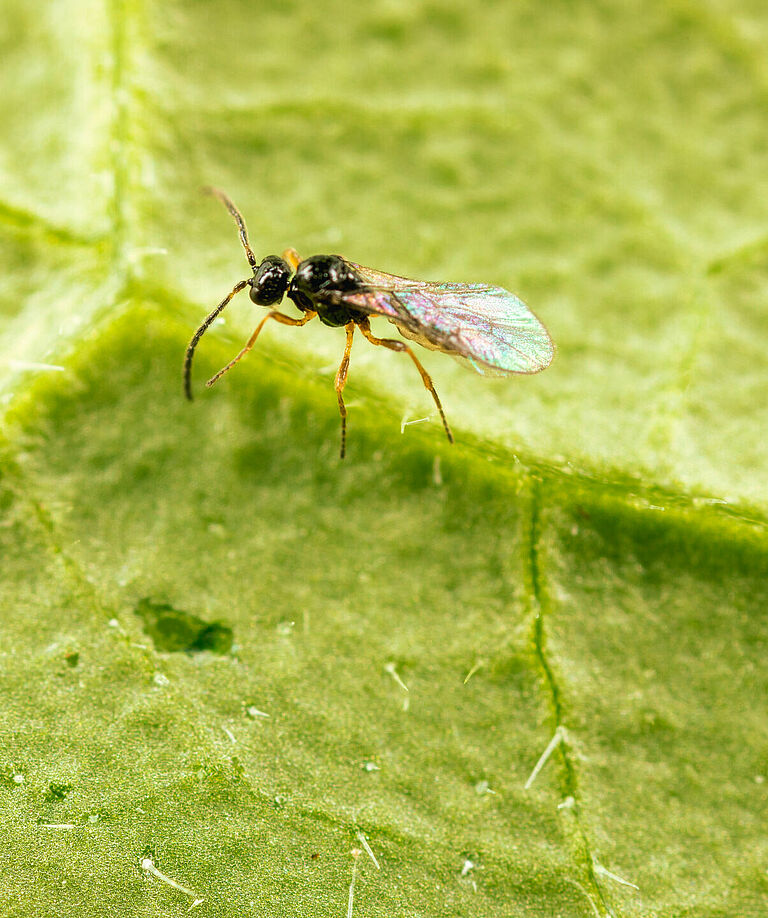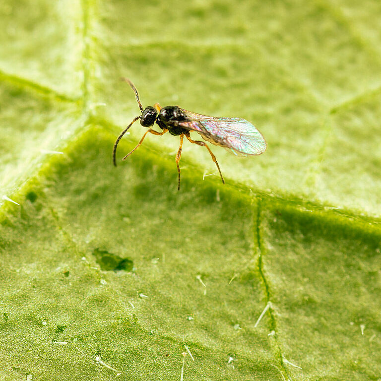 A vespa parasitoide Ephedrus cerasicola está disponível numa garrafa (Aphiscout)
